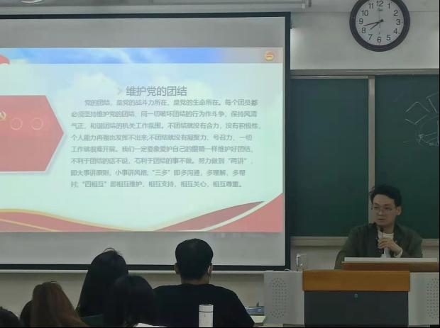 老师通过PPT的形式向学员们详细介绍了共青团的艰辛发展史和光辉奋斗史,理解党百年奋斗的光辉历程,明白中国共产党的领导、中国特色社会主义道路是历史的选择、人民的选择,从党的非凡历程中感悟马克思主义的真理力量和实践力量。此次团日活动旨在帮助同学们更加全面系统地了解党史,向团员青年面对面讲好党的故事,有利于发挥组织化学习优势,更能引导共青团员跟党走。