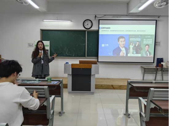 宣讲会上,链家房地产公司的招聘人员通过播放宣传片、PPT展示的方式向同学们介绍了公司的发展历程、招聘计划、培训基地以及业务发展方向等情况,深入阐述了公司文化、行业趋势、工作环境和住宿环境等方面的内容,使得在场的同学们对链家房地产公司有了更深层次的了解。