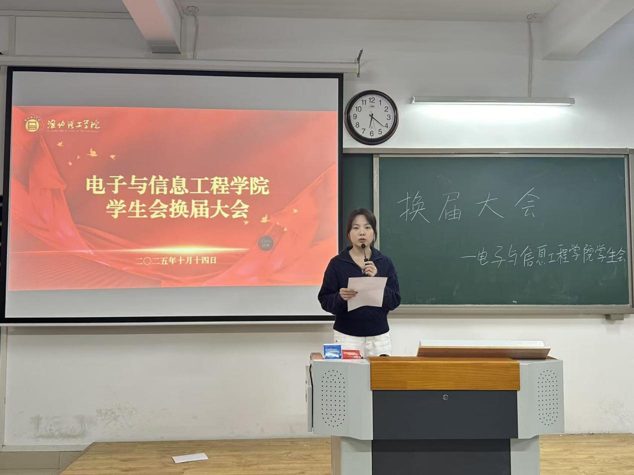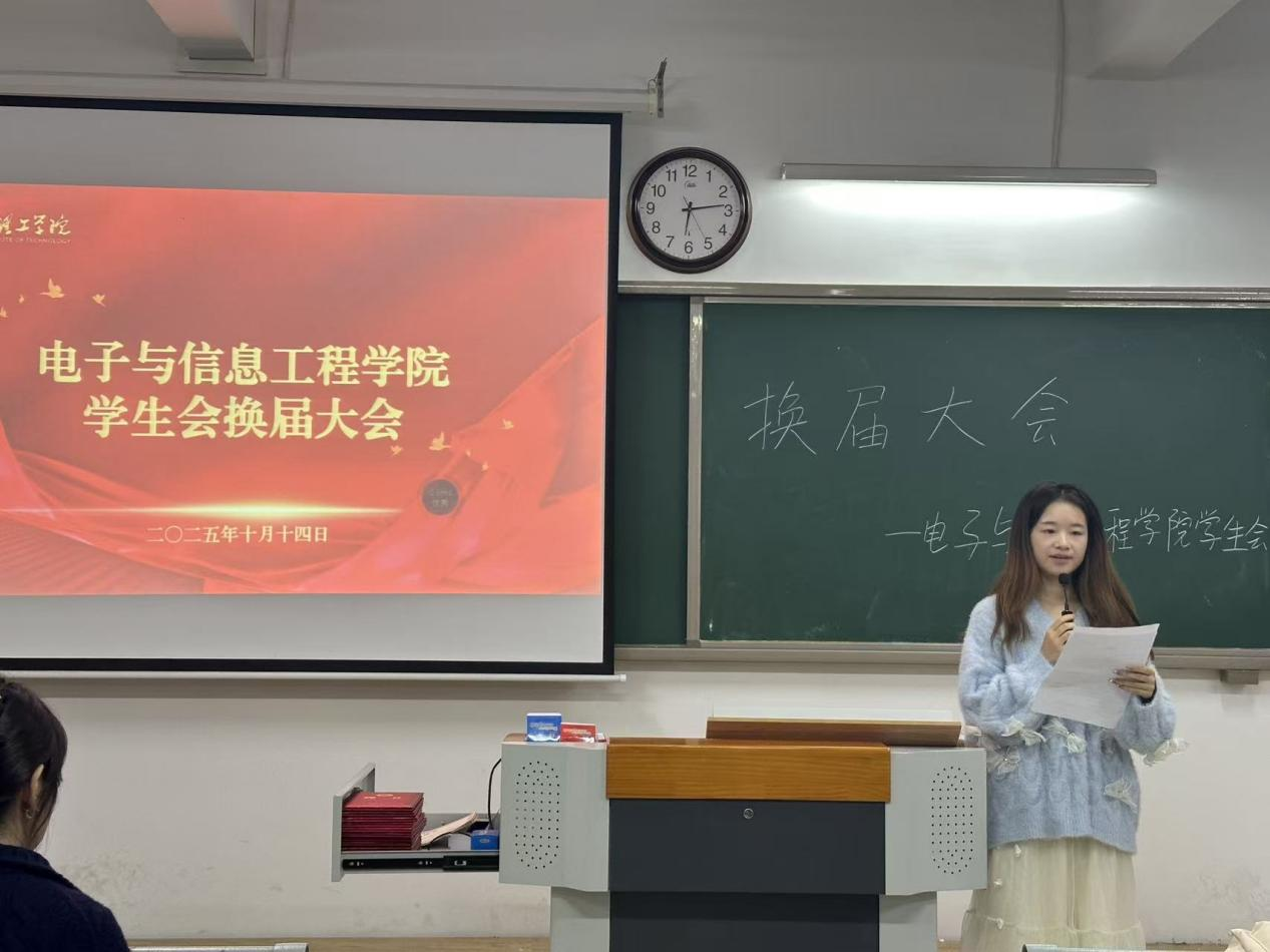 大会在庄严的国歌声中拉开帷幕。首先,上一届学生会主席尤雨悦同学代表第三届学生会作工作报告。她全面回顾了过去一年学生会在思想引领、校园文化、志愿服务、权益维护等方面开展的工作及取得的成效,分享了工作中的经验与感悟,并对学院领导、老师的悉心指导和全体同学的支持表示衷心感谢。报告既肯定了成绩,也客观分析了工作中存在的不足,并对新一届学生会工作提出了殷切期望。