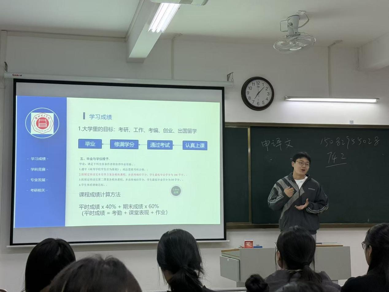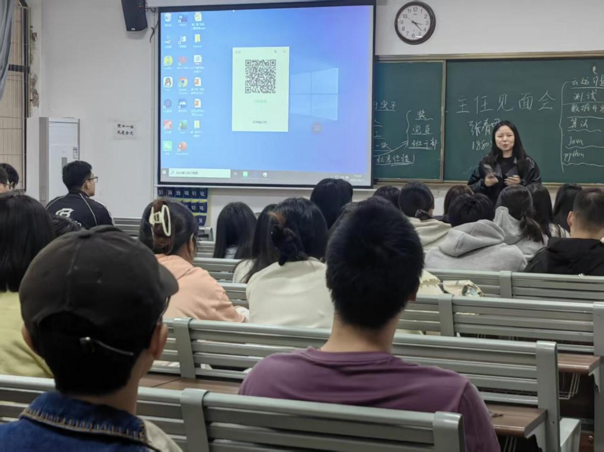 围绕学科竞赛与升学就业两大核心需求,班主任们提供针对性指导方案。学科竞赛方面,各专业班主任梳理清晰备赛路径,建议新生从了解竞赛规则起步,逐步组建跨专业团队参与校级、国家级赛事,重点推荐中国高校计算机大赛-人工智能创意赛(C4-AI)、“华为杯”中国大学生智能设计竞赛、“蓝桥杯”“互联网+”“全国大学生信息安全竞赛”“全国大学生数据挖掘竞赛”等高含金量赛事,介绍学校提供的竞赛培训课程、专业指导教师及实验室资源,鼓励以竞赛为“练兵场”提升问题解决与团队协作能力。 升学规划环节,针对考研需求,班主任们建议新生尽早明确目标院校与专业方向,分阶段制定复习计划:基础阶段主攻数学、英语与专业基础课,强化阶段通过刷题巩固知识、总结方法,冲刺阶段聚焦真题模拟与查漏补缺,同时提醒关注目标院校招生简章、报录比及专业课参考书目;针对考公需求,强调“时效性”与“针对性”,指导新生区分国考、省考、选调生考试的差异,建议从了解考试大纲入手,利用课余时间练习《行政职业能力测验》真题、积累《申论》素材。就业指导方面,班主任们结合行业趋势,分析各专业在软件开发、数据分析师、人工智能训练师、机器学习工程师等岗位的技能要求,建议新生按体制内、国企、私企等不同就业方向分类准备,注重实践经验积累与专业能力提升。