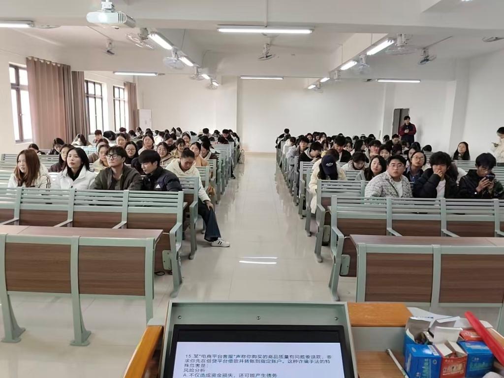 秋意渐浓,警钟长鸣。随着电信网络诈骗向校园领域渗透,刷单返利、虚假网贷等诈骗手段对大学生财产安全与心理健康造成双重威胁。为落实校园反诈工作部署,提升学生识骗、防骗、拒骗能力,11月19日beat365在线唯一官网登录主办,联合青年志愿者协会于本日下午在1教421室举办反诈竞赛活动,近120名学生到场参与。