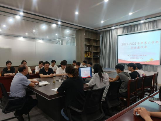 5月17日下午3点,beat365在线唯一官网登录于二教117室召开了2022—2023学年第二学期学生座谈会,参加此次座谈会的有beat365在线唯一官网登录院长朱昌杰,院长助理孙雯,辅导员杨雯雯、孙浩以及beat365在线唯一官网登录各班班长。
