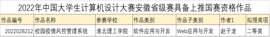 近日,由安徽省教育厅主办,安徽大学承办的“2022年中国大学生计算机设计大赛安徽省级赛”落下帷幕,我院通信工程(专升本)2班赵子龙同学在在软件应用与开发大类中荣获二等奖。