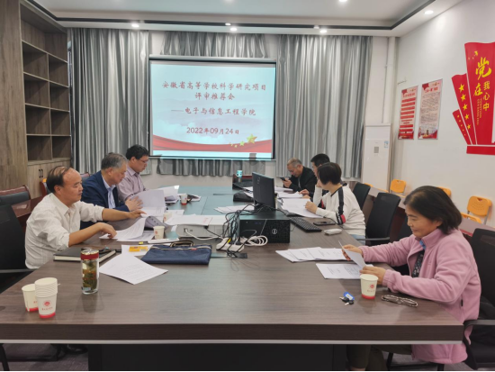 9月24日,我院组织召开2022年安徽省高校科学研究项目申报评审会。会议由电信学院朱昌杰院长主持,汪建利副校长出席会议,会议邀请了由宋万干教授、吕红教授、杨一军教授、尹新国教授、张丽芳教授组成的评审专家组。