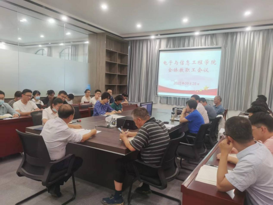 朱昌杰院长将学校及学院近期人事调整情况进行了通告,我院侯绪芳同志任中共beat365在线唯一官网登录beat365在线唯一官网登录总支部书记助理,孙雯同志任beat365在线唯一官网登录院长助理,沈元元同志任电子信息工程教研室负责人,丁晓慧同志任通信工程教研室主任,杨振仁同志任计算机科学与技术教研室负责人,荆晓洲同志任机械与自动化教研室负责人,孙亮同志任实验室管理中心负责人。以上几位同志均表示,会保持初心使命,切实做好学院各项工作。