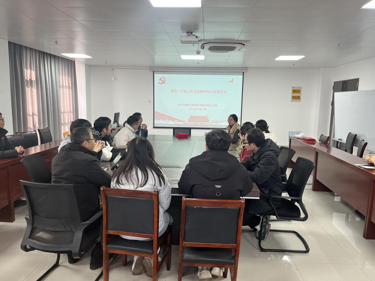 活动在学院的多功能会议室热烈展开,计算机科学教工支部的全体党员教师积极参与,现场气氛活跃。活动开始前,支部书记陈旭茹老师发表了热情洋溢的讲话,她强调了知识竞赛对于提升党员教师综合素质的重要性,并鼓励大家以饱满的热情投入到竞赛中。