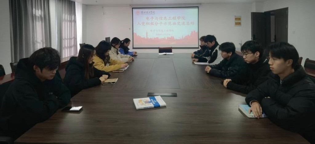 讨论过程中,各小组氛围热烈,学员们踊跃分享感悟。谈及示范班收获,低年级学员表示,通过系统学习深化了对党的理论与历史的认知,明晰了“为何入党、为党做什么”的初心;学生干部学员则提到,示范班的实践教学环节,帮助自己学会用党的方法论解决学生工作难题。围绕“提高素质、争取入党”,学员们结合专业特点提出具体方向:一方面深耕电子信息专业知识,以科研实践夯实能力基础;另一方面主动参与志愿服务、班级管理,在服务同学中锤炼责任担当,同时定期对照党员标准反思不足,及时向党组织汇报成长动态。