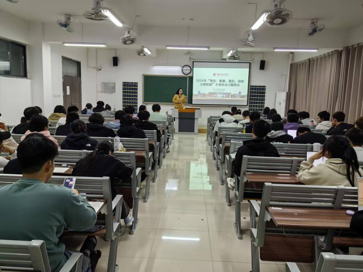 为贯彻落实立德树人的根本任务,坚持“依法治校,以德治校”。beat365在线唯一官网登录于2024年10月28日开展“普法、修德、遵纪,创建文明校园”的主题班会。此次主题班会旨在通过丰富多彩的宣传教育和实践活动,营造出一个法治、文明、和谐的校园环境。