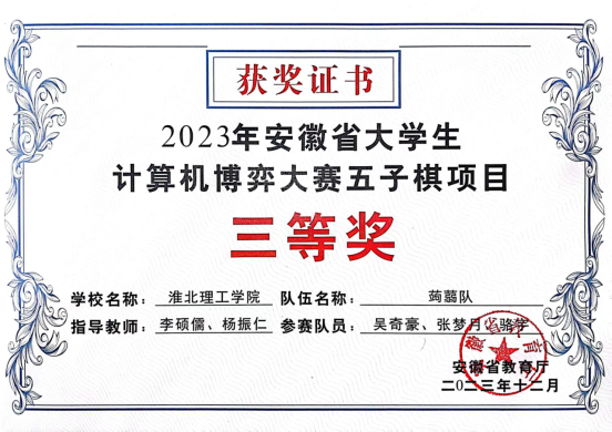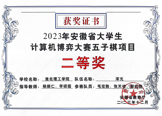 近日,安徽省大学生计算机博弈大赛(安徽省大学生学科和技能竞赛B类项目)在安徽大学举办,beat365beat365在线唯一官网登录计算机科学与技术专业学生首次参加此项比赛,取得二等奖1项、三等奖1项的好成绩。
